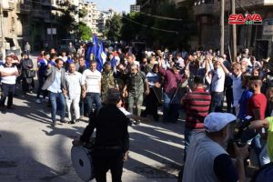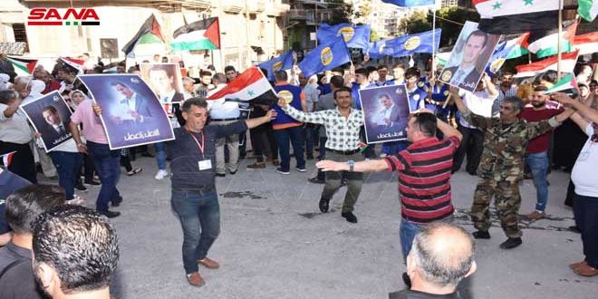 احتشد أبناء مدينة حلب في تجمع جماهيري أقيم مساء اليوم في ساحة محطة القطار بحي محطة بغداد تعبيراً عن فرحتهم بإنجاز الاستحقاق الدستوري وفوز الدكتور بشار الأسد بانتخابات رئاسة الجمهورية رفع خلاله المشاركون الأعلام الوطنية وصور الدكتور الأسد ورددوا الهتافات والأغاني الوطنية.