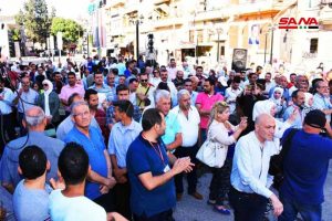 وأعرب المشاركون في التجمع خلال تصريحات لمراسلة سانا عن فرحتهم بفوز الدكتور الأسد بالانتخابات الرئاسية حيث لفت خالد أبو بكر إلى أنه لولا أبطال الجيش العربي السوري لما تم تحرير الجغرافيا السورية من رجس الإرهاب وأن الشعب السوري اختار القائد الأسد لأنه صبر مع شعبه وانتصر على الإرهاب بينما أوضح بكري جراده أن فوز الدكتور الأسد جاء تتويجاً لانتصارات الجيش العربي السوري على الإرهاب.