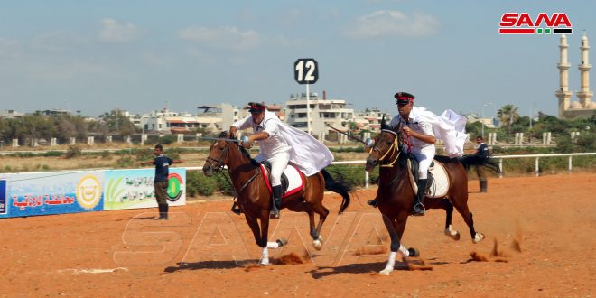من منافسات السباق الدوري الثالث للخيول العربية الأصيلة على أرض ميدان سباق الخيل في مدينة الأسد الرياضية باللاذقية- صور