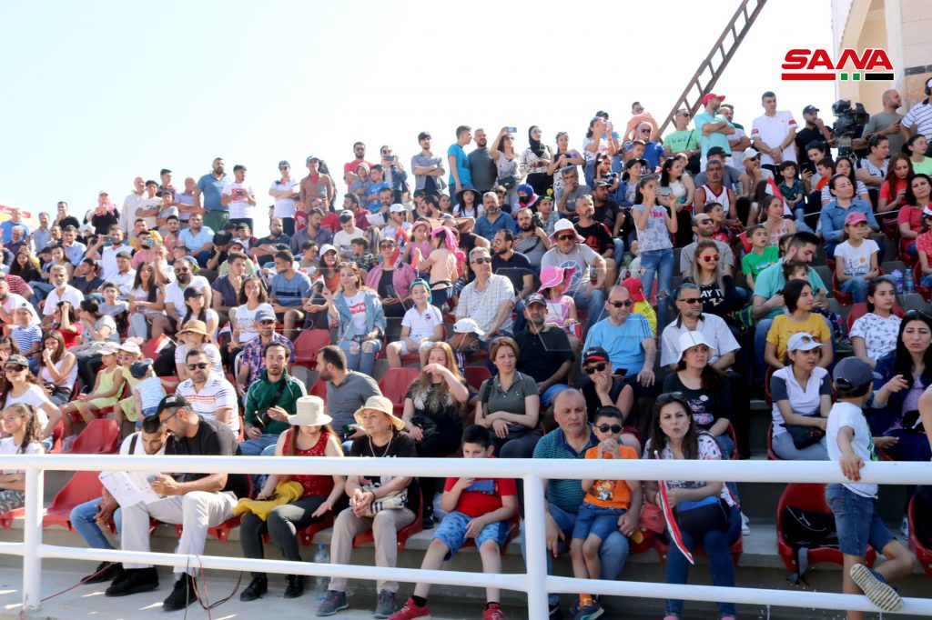 وتسابقت الخيول السورية الصافية والعربية المسجلة على سبعة أشواط تم تخصيص الأول والثاني منها لمسافة 1250مترا والثالث والرابع لمسافة 1000 متر والخامس والسادس لمسافة 1800 متر أما الأخير فكان لمسافة 2250متراً.