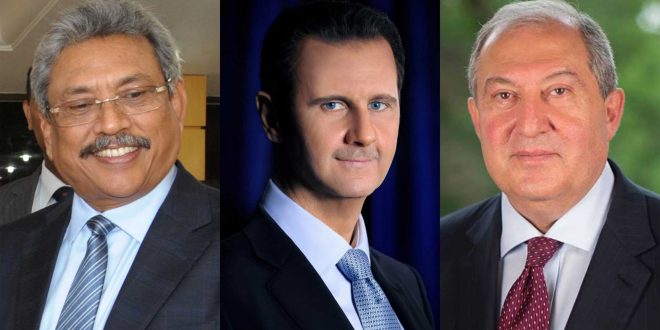 تلقى السيد الرئيس بشار الأسد برقيتي تهنئة من رئيسي أرمينيا أرمين ساركيسيان وسريلانكا غوتابايا راجاباكسا بمناسبة فوزه في انتخابات رئاسة الجمهورية.