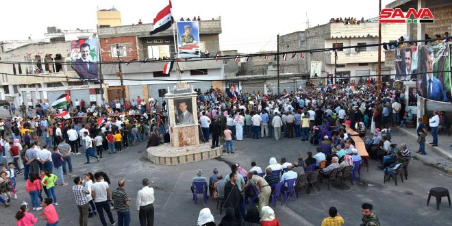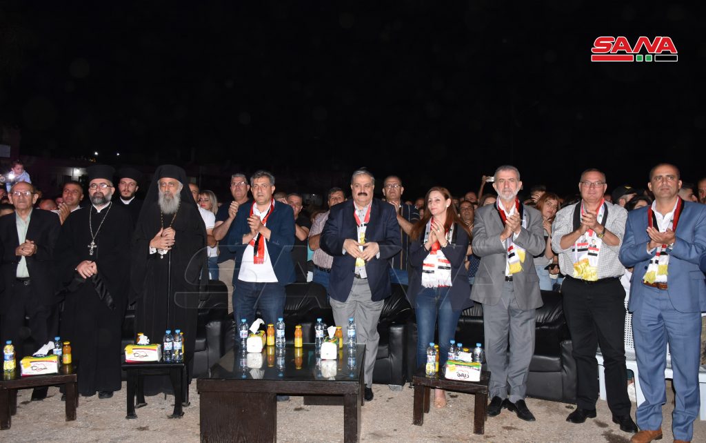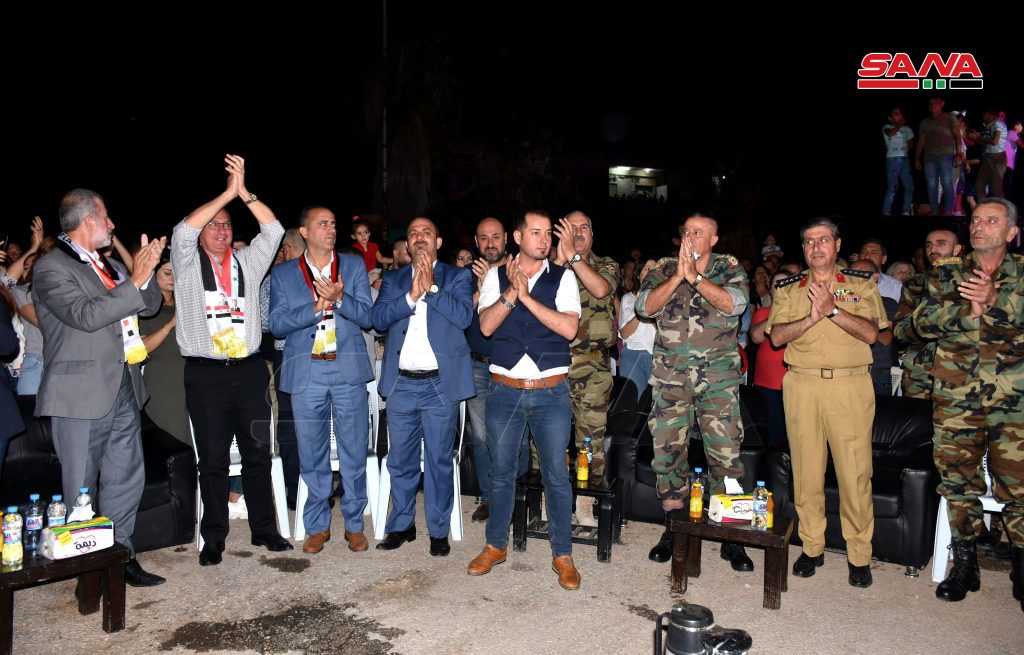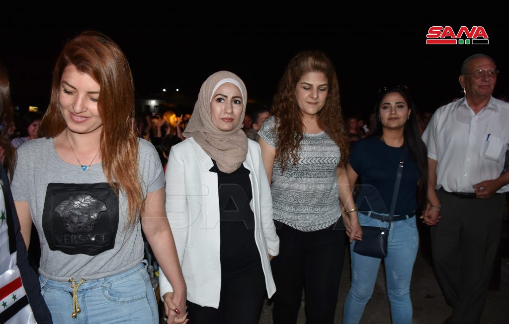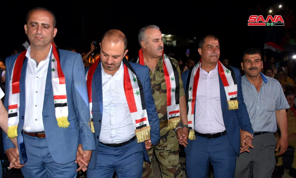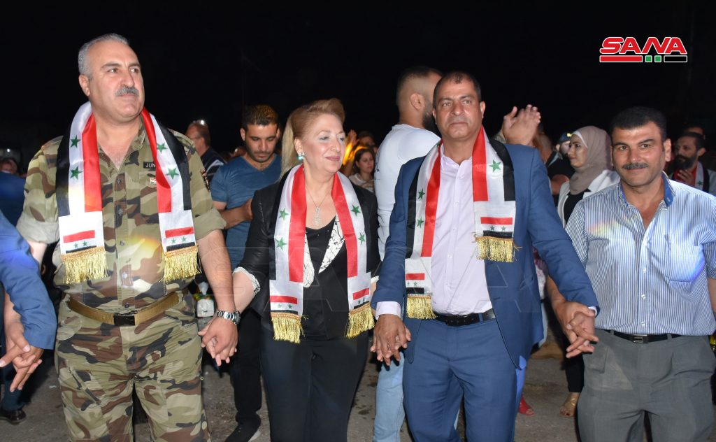 هلا سلوم أكدت أن احتفال اليوم بمثابة فرح لكل سورية معاهدة سيد الوطن بأن يكونوا معه يداً واحدة وقلباً واحداً لإعادة بناء سورية الحداثة والتاريخ فيما بينت رنا عباس من أهالي السقيلبية أن الحفل هو عربون وفاء للسيد الرئيس لأنه فخر لكل سوري شريف.
