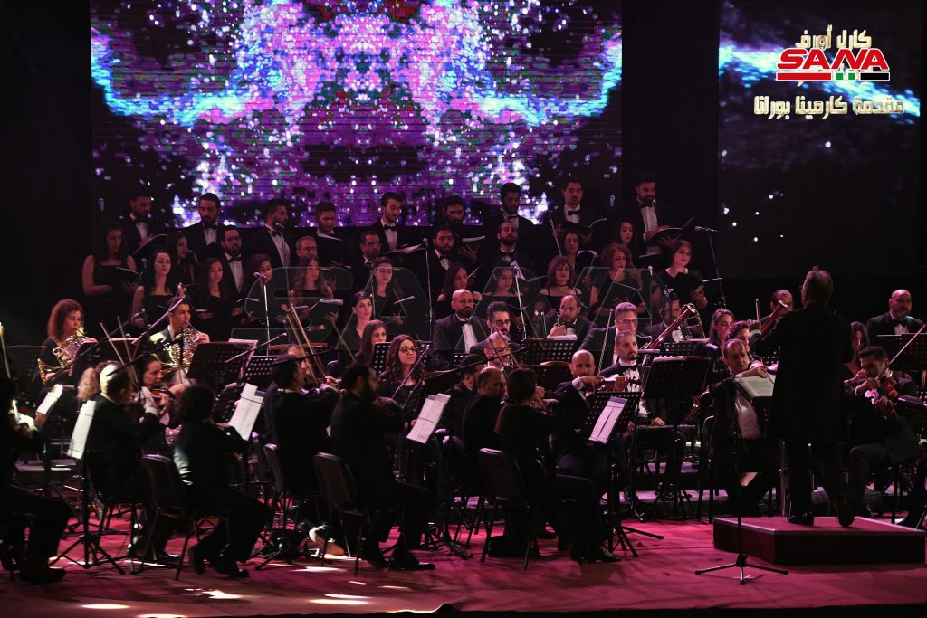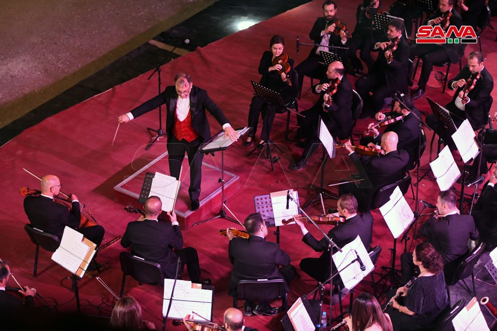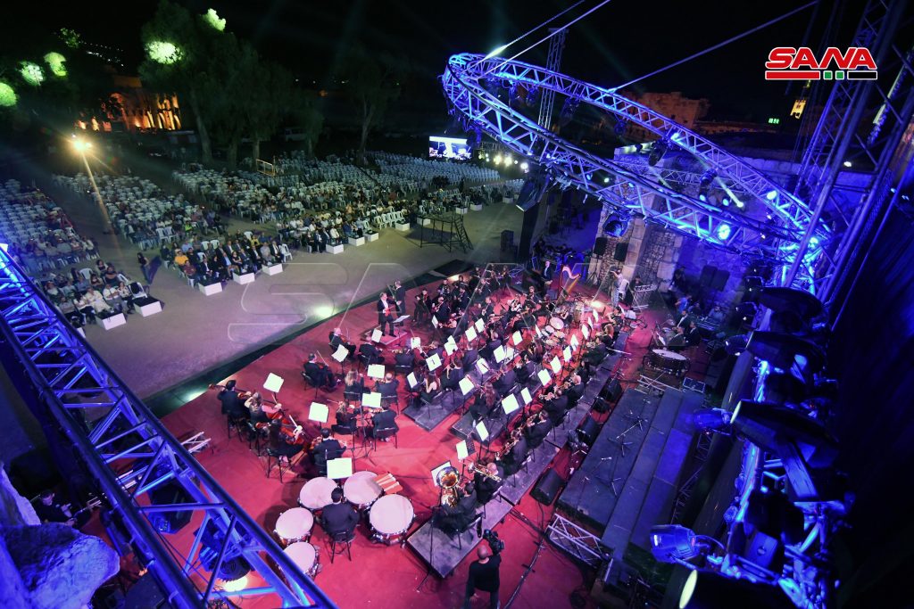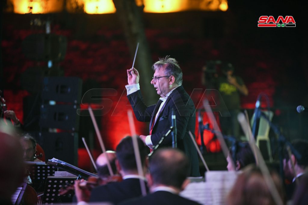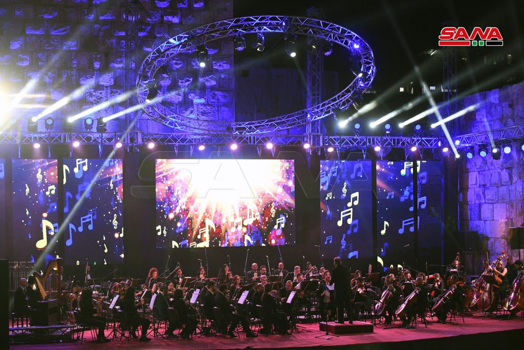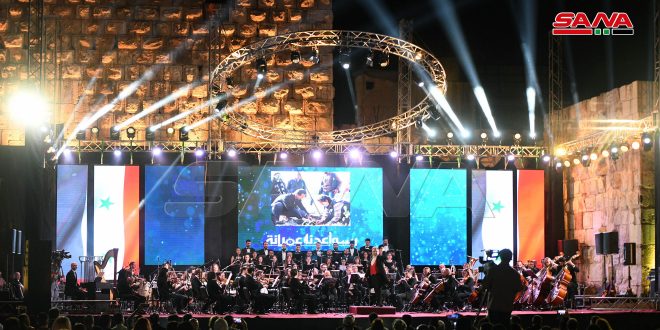 قلعة دمشق المسجلة ضمن مواقع التراث العالمي لليونسكو منذ 41 عاماً احتضنت عشاق الموسيقا الكلاسيكية في أمسية أحيتها الفرقة السيمفونية بقيادة المايسترو ميساك باغبودريان وفرقة موسيقا الجيش ضمن احتفالات فعالية “بسواعدنا عمرانة” للشعب السوري بمناسبة انتصار قراره السيادي الدستوري في انتخاب رئيس الجمهورية العربية السورية الدكتور بشار الأسد.