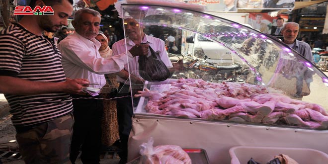 انخفض سعر كيلو الفروج المذبوح والمنظف في محافظتي دمشق وريفها بين 500 و600 ليرة سورية أما في محافظات المنطقتين الساحلية والشمالية فانخفض بين 600 و700 ليرة وفق مدير حماية المستهلك في وزارة التجارة الداخلية وحماية المستهلك وليد العايش الذي أشار إلى أن الانخفاض مستمر.