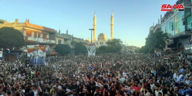 لقطات من الحفل الجماهيري الحاشد في بلدة شين بريف حمص الغربي احتفاء بفوز الدكتور بشار الأسد في انتخابات رئاسة الجمهورية