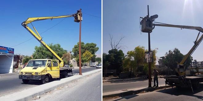 نفذت ورشات مديرية الإنارة والكهرباء في محافظة دمشق أعمال تأهيل وصيانة شملت تركيب أعمدة إنارة وأجهزة توفير الطاقة للطريق الواصل من ساحة العباسيين باتجاه جوبر.
