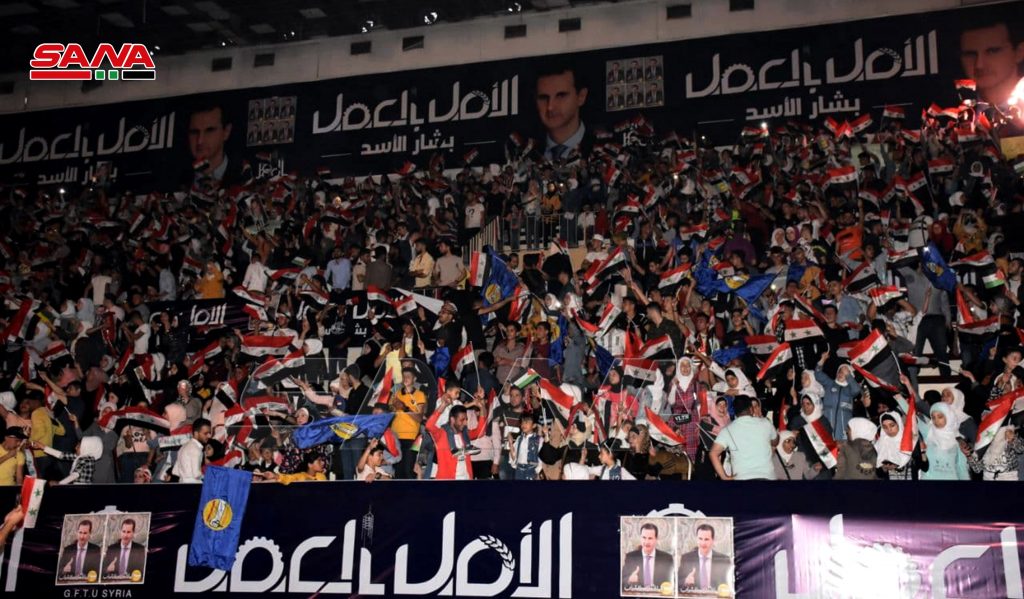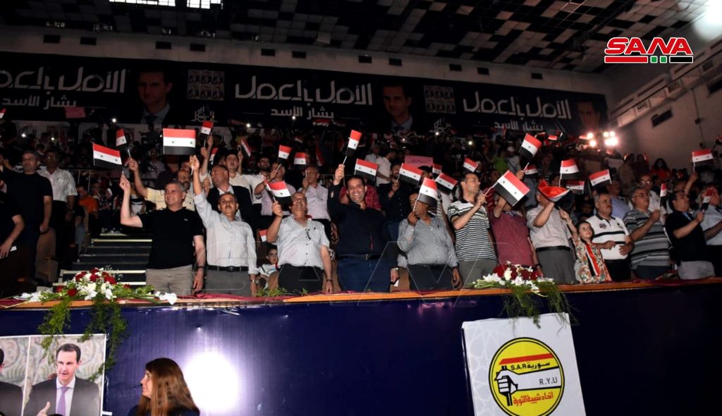 أقام فرع حلب لاتحاد شبيبة الثورة احتفالية شبابية فنية في صالة الأسد الرياضية احتفالاً بفوز الدكتور بشار الأسد بانتخابات رئاسة الجمهورية.