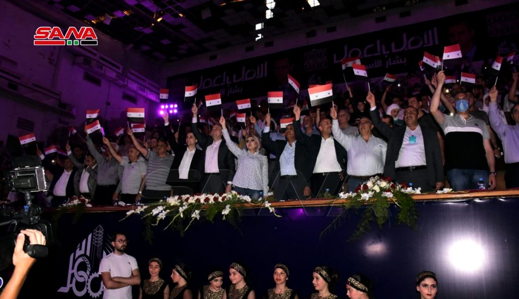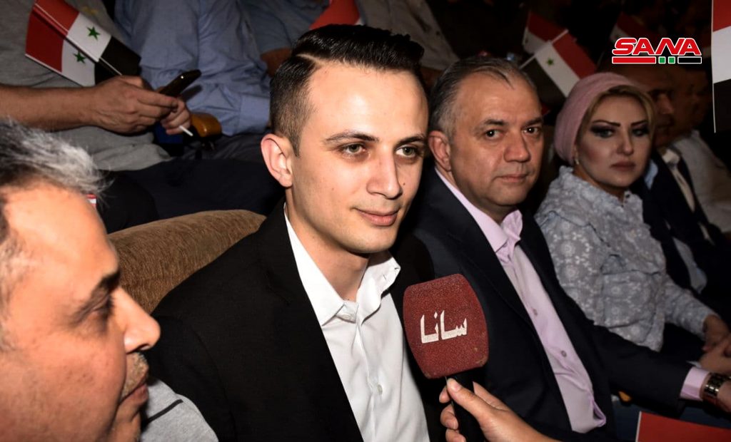 من جانبه بين رئيس فرع حلب لاتحاد شبيبة الثورة محمد نيال أن شبيبة وأهالي حلب اليوم مجتمعون بكل محبة ليعبروا عن فرحهم بفوز الرئيس الأسد بالاستحقاق الرئاسي.