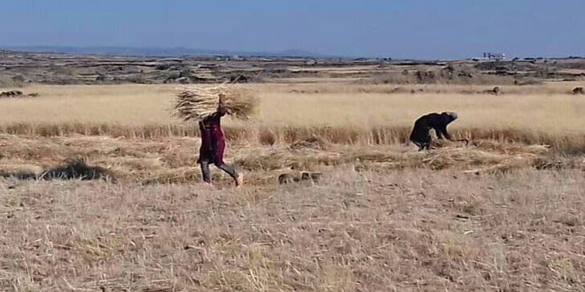 ووفقاً لعدد من المزارعين في منطقة شهبا فإن واقع محصول القمح مقبول بشكل عام وعملية الحصاد مستمرة بوتيرة متسارعة وتم تسليم الكميات المنتجة من القمح للمؤسسة.