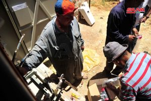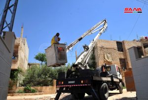 سانا رصدت واقع العمل في مناطق صحنايا والأشرفية وداريا حيث بين العامل زياد غانم من قسم كهرباء صحنايا والذي يعمل ضمن ورشة في منطقة العلالي بأشرفية صحنايا منذ نحو أسبوع أن الورشة تقوم بتركيب مركز تحويل جديد لتخفيف الحمولة الزائدة والانقطاعات عن المراكز القديمة بينما أشار العامل أحمد النادر الذي يقوم بتجهيز الكبائن لتغذية الأبنية إلى العمل بوتيرة متسارعة لتأمين التيار الكهربائي للمواطنين بشكل أفضل.