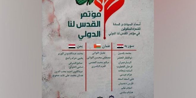 أحرز شعراء سوريون المرتبة الأولى في مسابقة مؤتمر القدس لنا الدولي الشعرية التي أقامتها مؤسسة أدبنا الدولية عبر شبكة الانترنت بمشاركة شعراء من ثمانية دول عربية وأجنبية.