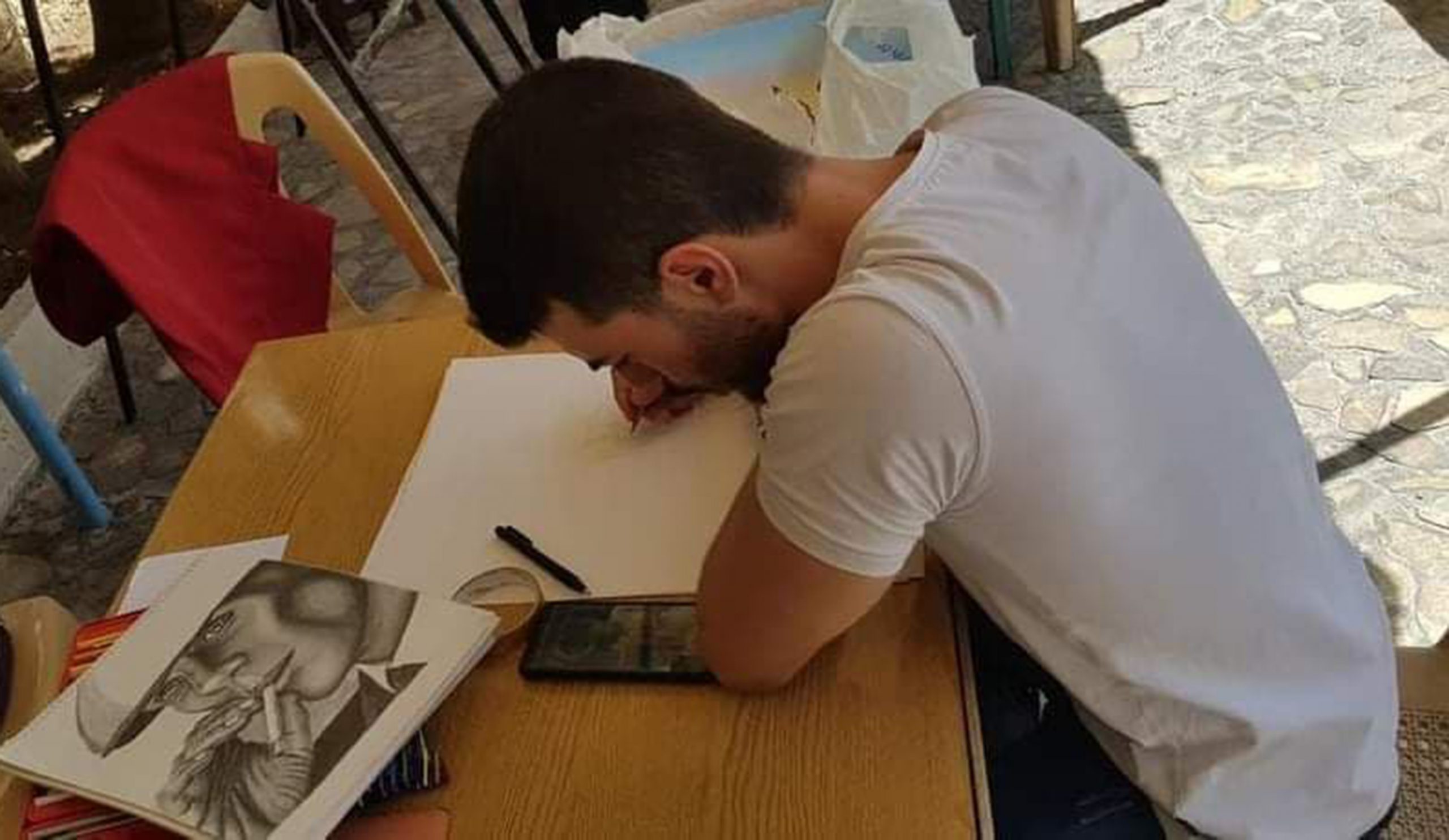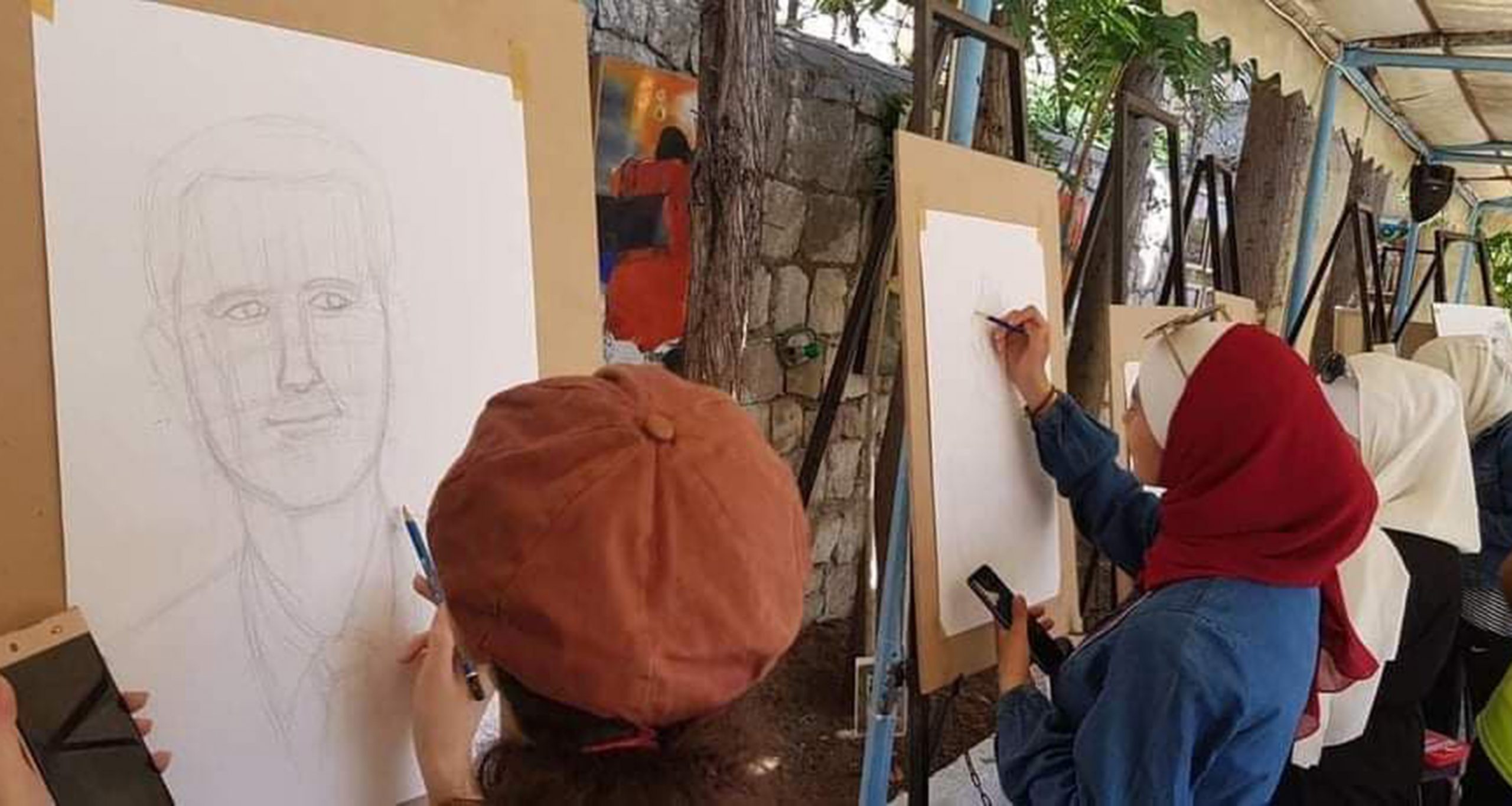واختار المشارك محمد نور عرعار رسم بورتريه لرجل مسن معبراً عن أهمية الملتقى في فتح افاق جديدة أمام المشاركين الشباب والاخذ بأيديهم.