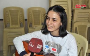 الشابة منتهى حمود طالبة هندسة معلوماتية من محافظة طرطوس تهوى عزف آلة الغيتار منذ الطفولة وجدت في هذا المشروع فرصة لاستذكار معلوماتها وتطوير موهبتها التي أحبتها ولا سيما أنها تجد في الموسيقا ملاذاً لتهدئة الأعصاب والراحة النفسية في فترة الضغوطات.