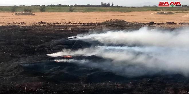 وذكر رئيس دائرة الحراج في مديرية الزراعة المهندس جميل العبد الله في تصريح لمراسل سانا اليوم أن الحريق طال مساحة 15 دونما من بقايا الحصاد وتمت السيطرة عليه قبل التوسع باتجاه الحقول المجاورة.