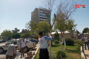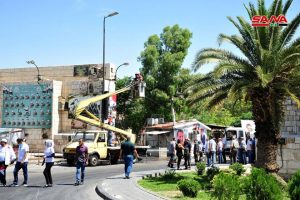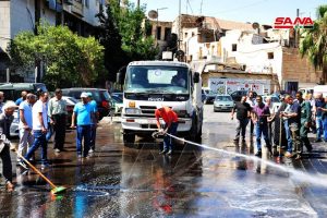 للجمعة الثانية على التوالي نفذت محافظة دمشق بالتعاون مع المجتمع المحلي والجمعيات الأهلية ولجان الأحياء يوماً تطوعياً خدمياً تضمن تأهيل وصيانة أرصفة وطرقات وأجهزة إنارة ودهان أطاريف وزراعة نباتات وتنظيف حدائق وتعشيباً وأعمال شطف للشوارع وحملات نظافة وإزالة للملصقات الإعلانية الجدارية وذلك في عدد من ساحات وأحياء المدينة.