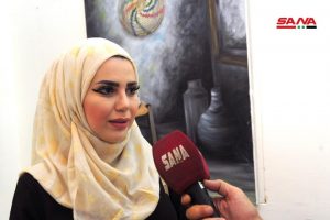 الفنانة سماح زرزور شاركت بعملين زيتيين يحكيان عن دمشق وروحها وذاكرتها الشعبية من المهباج والمعطرة والكرسي الدمشقي والبيوت القديمة في سورية لافتة إلى أن الاهتمام بالتراث يعني الانتماء للوطن وسورية غنية بالجمال وعلى الفنان التشكيلي إحياؤها.