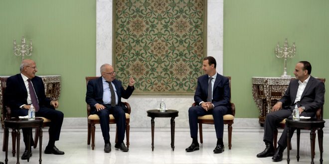استقبل السيد الرئيس بشار الأسد اليوم وفداً من المؤتمر القومي الإسلامي يضم رؤساء أحزابٍ ونواباً وشخصياتٍ سياسيةٍ ونقابيةٍ من عددٍ من الدول العربية والإسلامية.