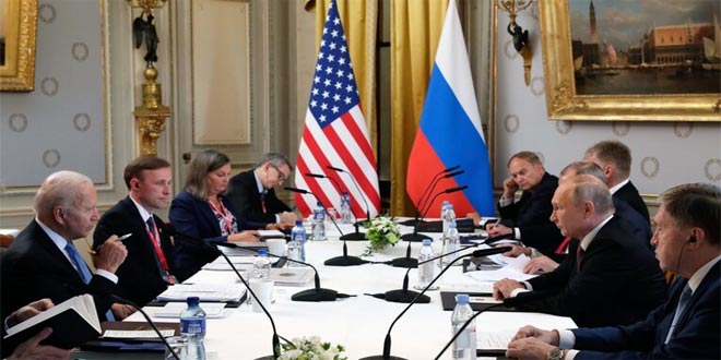 وكان بوتين وبايدن أنهيا في وقت سابق جولة من المحادثات على نطاق ضيق حيث أشار المتحدث باسم الرئاسة الروسية ديمتري بيسكوف إلى أن المحادثات التي أجراها بوتين وبايدن في فيلا “لا غرانج” بحضور وزيري خارجيتي البلدين استمرت نحو ساعتين بدلاً من 75 دقيقة كما كان مقرراً أصلاً.