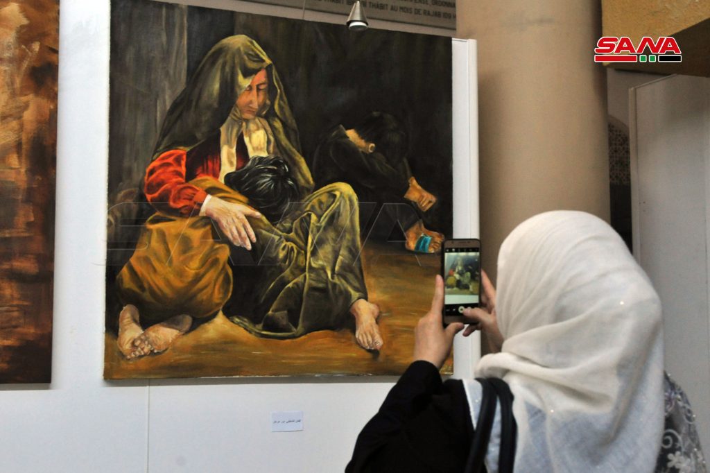 الفنان التشكيلي عدنان قاسم بين لـ سانا أنه شارك بست لوحات عبر فيها من خلال المدرسة الواقعية عن واقع هؤلاء الأطفال ولامس أحزانهم التي فرضها الواقع الاقتصادي السيء لأسرهم وظروف الحرب التي زادت معاناتهم.