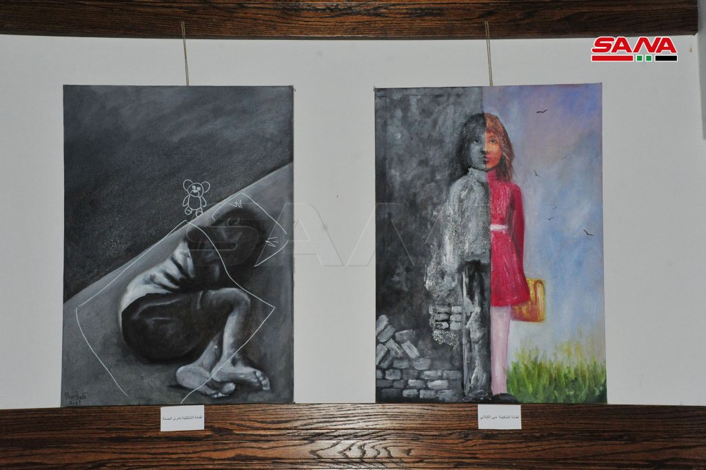 فيما قدم كل من الفنان نور عرعر والفنانتين ريم العدوي و رنا طه رسائل بصرية متنوعة عبر لوحات متعددة من المدرستين الانطباعية والتجريدية أظهرت عبر تناقض الألوان صوراً عن واقع الأطفال الذين اضطرتهم الظروف للعمل وحرمتهم من حقوقهم وعن الصورة الواجب أن يكونوا عليها مؤكدين دور الفن التشكيلي إلى جانب وسائل الإعلام في نقل واقع هؤلاء الأطفال ومحاكاة هموم المجتمع.