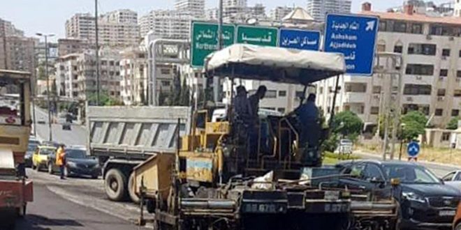 مدير الصيانة في المحافظة المهندس إسماعيل قطيفاني بين في تصريح لمندوب سانا اليوم أن ورشات المديرية باشرت أعمال مد قميص إسفلتي للطريق الممتد من ساحة الهدى وحتى معهد اللغات بحي المزة جبل بعد قيام الورشات بقشط الإسفلت المتضرر للطريق البالغ طوله أكثر من 210 أمتار وعرضه بين 14 و16 متراً وبمساحة تقدر بنحو 3200 متر.
