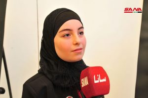 خريجة كلية الفنون الجميلة كناز زين الدين مدربة لطلاب مشروع بكرة إلنا أعربت عن سعادتها بالمشاركة مع طلابها من خلال لوحة استوحتها من حبها للدكتور بشار الأسد وفوزه في الانتخابات.