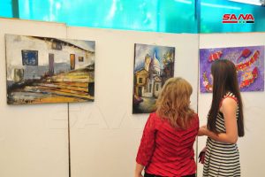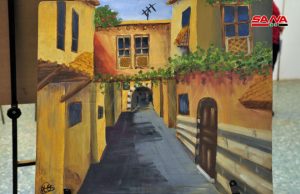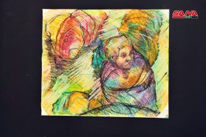 الفنانة التشكيلية سهى عيد جاءت مشاركتها من خلال لوحتين من المدرسة الانطباعية التجريدية تمحورت فكرتهما حول إعمار سورية ودمشق القديمة ولفتت إلى أهمية هذه الورشات الفنية في تطوير مواهب الشباب واليافعين.