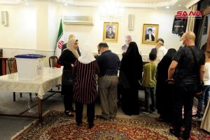 توافد المواطنون الإيرانيون المقيمون في سورية منذ صباح اليوم إلى مقر السفارة الإيرانية بدمشق للإدلاء بأصواتهم في إطار الانتخابات الرئاسية الإيرانية.