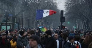 تظاهر عمال فرنسيون اليوم في العاصمة باريس احتجاجاً على خطة لتخفيض الرواتب من جراء تداعيات وباء كورونا.