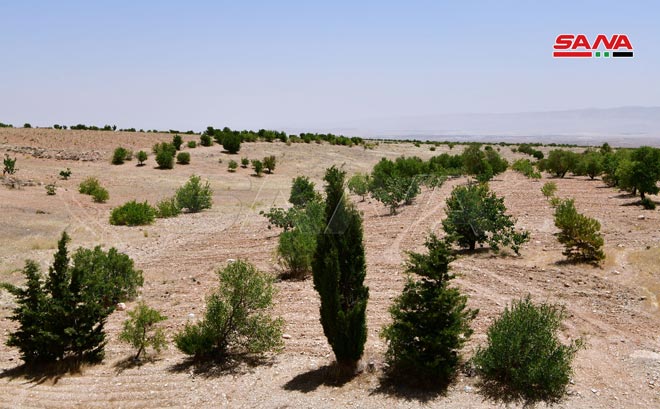 يتوسع مشروعا الحزام الأخضر والتشجير المثمر في جرود بلدة قارة بريف دمشق تدريجياً ويمتد الحزام حالياً على مساحة 10 آلاف دونم 90 بالمئة منها مزروعة بأشجار اللوز و5 بالمئة أشجار كرز والجزء المتبقي أشجار الفستق الحلبي والكرمة والمشمش فيما يمتد مشروع التشجير المثمر على 6 آلاف هكتار 60 ألف دونم معظمها أشجار كرز.