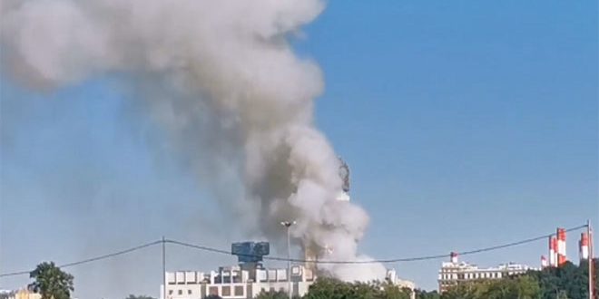 أصيب خمسة أشخاص بينهم رجال إطفاء جراء حريق ضخم اندلع اليوم في مستودع للمفرقعات بالقرب من وسط العاصمة الروسية موسكو.