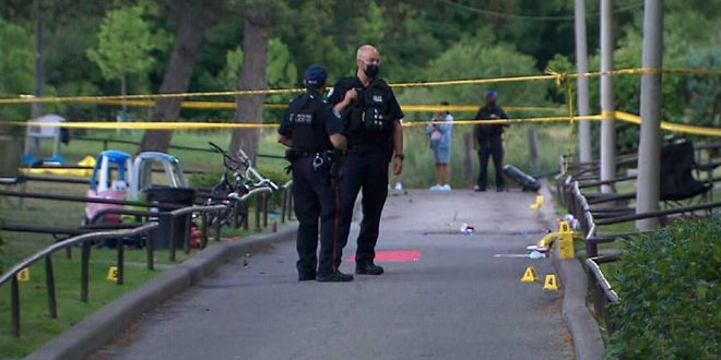 أعلنت الشرطة الكندية عن إصابة أربعة أشخاص بينهم ثلاثة أطفال في حادث إطلاق نار بمدينة تورنتو الكندية.