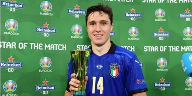 حصد فيديريكو كييزا جناح المنتخب الإيطالي جائزة أفضل لاعب في مباراة إيطاليا وويلز في بطولة كأس الأمم الأوروبية.