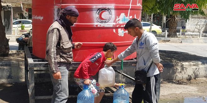 الأهالي الذين تزداد معاناتهم في ظل ارتفاع درجات الحرارة وانقطاع شبه تام للتيار الكهربائي يعتمدون اليوم على مياه الصهاريج والخزانات التي وضعها فرع منظمة الهلال الأحمر العربي السوري في أحياء المدينة وهي لا تسد الحاجة في حين جفت أغلبية الآبار السطحية التي حفرها الأهالي خلال الفترة السابقة وبات تأمين المياه يشكل عبئاً ثقيلاً عليهم.