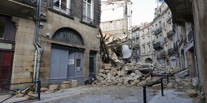 أصيب ثلاثة أشخاص بجروح اليوم جراء انهار مبنيين في شارع دولاروسيل بالقرب من بورت دي بورغوني في بوردو جنوب غرب فرنسا.