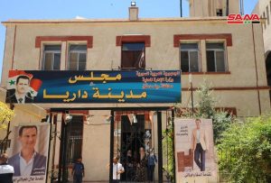 كما أكد عبيد أن عودة الخدمات تدريجياً تسرع وتيرة عودة الأهالي وهو ما بدأ بعودة البلدية والمستوصف والمخبز الآلي ومقسم الهاتف والمخفر للعمل ثم تضاعف عدد العائدين ليصل حالياً إلى 80 ألف نسمة مبيناً أن البلدية مستمرة أيضاً بتنفيذ مشاريع الصرف الصحي ومد شبكات المياه وحفر الآبار والأرصفة وتعبيد الشوارع والإنارة وترحيل الأنقاض والقمامة أما تأهيل مدخل داريا فهذا الأمر مطروح حالياً على اللجنة الاقتصادية ليتسنى تنفيذه في النصف الثاني من العام الجاري.