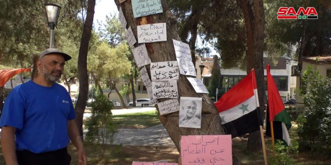 يواصل الفلسطيني أحمد جبريل فارس جبريل لليوم الثاني عشر على التوالي إضرابه عن الطعام أمام مكتب منظمة الأمم المتحدة للطفولة “اليونيسيف” بمنطقة المزة في دمشق احتجاجاً على الاحتلالين الأمريكي والتركي لبعض الأراضي السورية وقيامهما بسرقة مواردها الطبيعية.