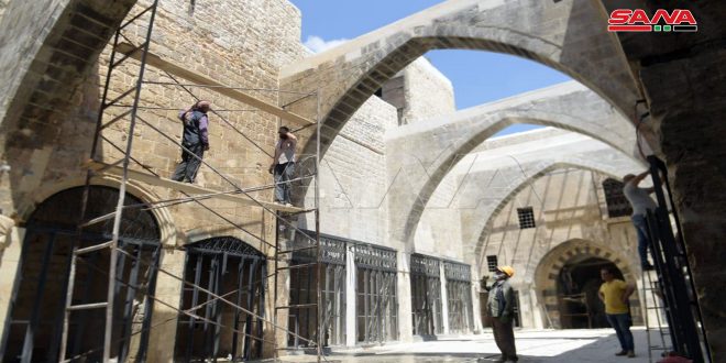 ويشير الشهابي إلى أن أعمال الترميم شملت أيضاً السقف البيتوني الذي تمت إزالته بسبب الأضرار التي لحقت به جراء الإرهاب حيث يتم التنسيق مع الجهات المعنية بالترميم لتركيب سقف خشبي ينسجم مع الطابع العمراني للأسواق القديمة مبينا أنه تم إنجاز 80 بالمئة من أعمال الترميم.