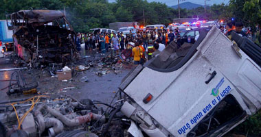 قتل 21 شخصا وأصيب 30 آخرون جراء اصطدام حافلة بشاحنة نقل في إقليم زابول جنوب أفغانستان اليوم.