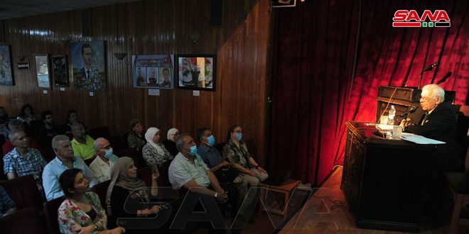كما لفت القبيسي إلى نشأة اللغة عموماً والحاجة إليها وآليتها الأولى وتطورها الدلالي عبر الزمن وعلاقة اللغة بالمكان وانتماء شعوب تلك المناطق لأصل واحد ولغة واحدة هي اللغة العربية معتبراً أن من يعمل على تشويه تلك الحقيقة إنما يخدم بذلك الفكر الصهيوني الذي يعمل على تشتيت المنطقة للسيطرة الكاملة عليها وعلى شعوبها.