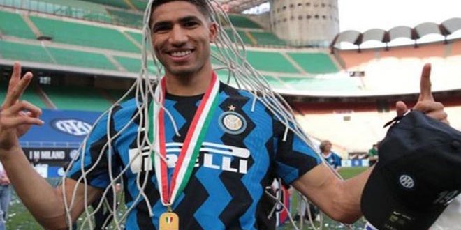 وكان حكيمي توج مع فريق انتر ميلان ببطولة الدوري الإيطالي الموسم الماضي 2020- 2021.