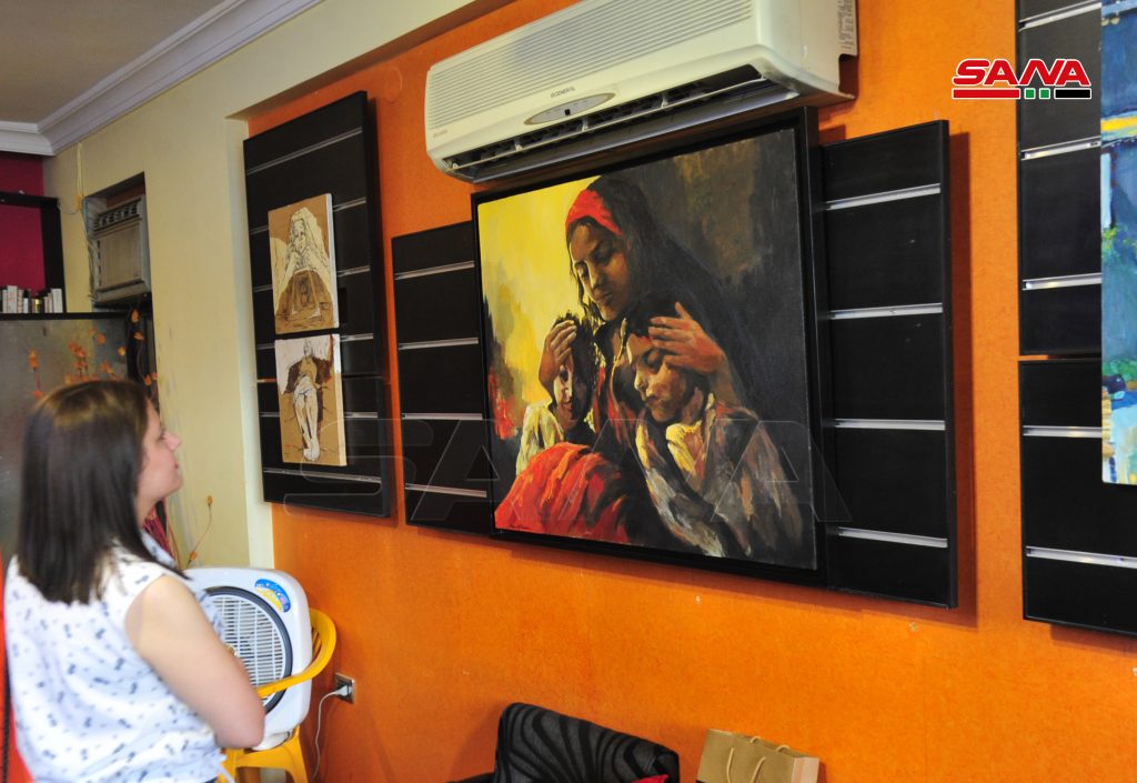 الفنان عدنان حميدة أوضح أن مرسمه يدعم المواهب للذين لم يدرسوا الفنون أكاديميا بحيث يتم تدريبهم وتوجيههم بشكل صحيح والإشراف على أعمالهم نشيرا إلى أن المشاركين في المعرض الذين يعكسون النسيج السوري اجتمعوا على الفن والمحبة والجمال.