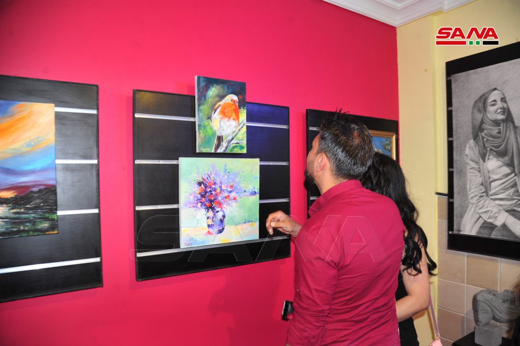 المعرض الذي افتتح مساء اليوم في صالة منتدى الفن بالسويداء بالتعاون مع مركز الفنان التشكيلي عدنان حميدة بدمشق يشارك فيه مجموعة من المواهب من مختلف المحافظات اضافة إلى مشاركات من فلسطين والعراق.
