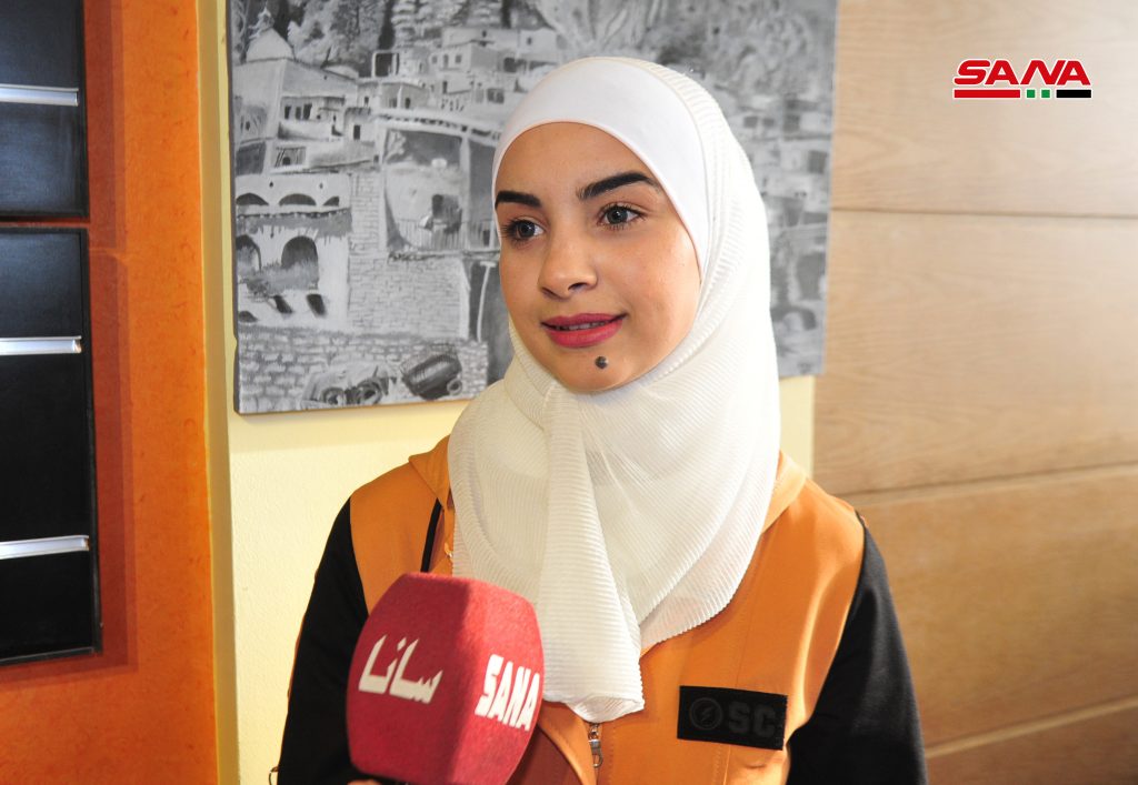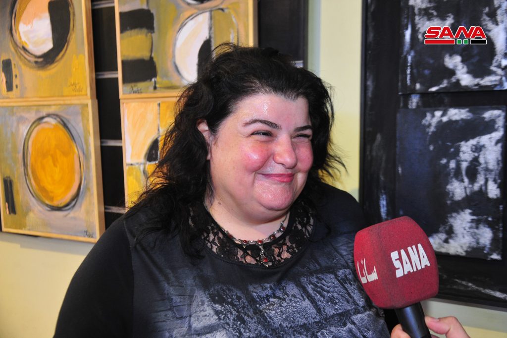 أما المشاركة رويدا الأحمد من أصحاب الإعاقة صم وبكم والتي رعى موهبتها الفنان حميدة واصفا إياها بـ “النادرة” فشاركت بأولى أعمالها لوحتين مناظر طبيعية بتقنية الاكريليك عن مدينة معلولا وهي من جملة أعمالها التي أنجزت بالمرسم خلال السنة الماضية.
