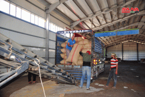 وتتم عمليات استلام القمح كما ذكرت رئيسة دائرة التسويق في فرع المؤسسة العامة لإكثار البذار بالسويداء المهندسة سلاف السعد بشكل ميسر من حيث تنظيم الدور وتفريغ حمولات الشاحنات بالسرعة اللازمة وذلك بعد أخذ العينات منها وفحصها مخبريا ومطابقة نتائجها إضافة لرصد القيم المالية اللازمة للإسراع بصرف مستحقات المزارعين الذين يسلمون محصولهم للمؤسسة.