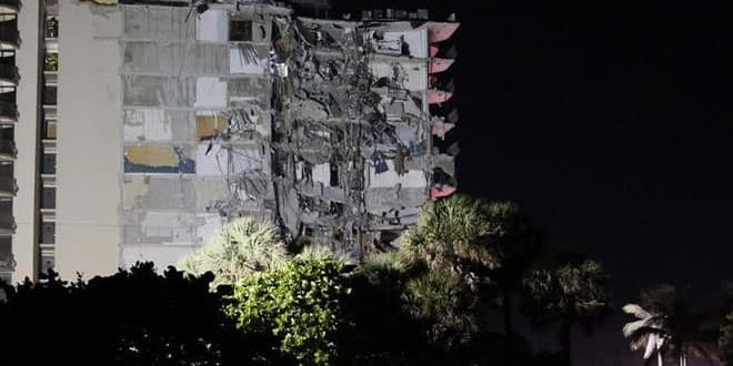 وذكرت إدارة الطوارئ في مقاطعة “ميامي داد” في تغريدة لها على موقع تويتر أن أكثر من 80 وحدة إطفاء وإنقاذ هرعت إلى موقع الحادث وأظهرت صور نشرت على حساب شرطة ميامي بيتش حطاما وأنقاضاً تتدلى مما تبقى من شرفات المبنى.