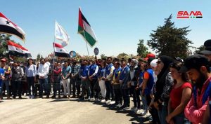 من جانبه أكد يوسف ركاب أستاذ في تربية القنيطرة أن ذكرى رفع العلم الوطني ستبقى ماثلة في ذاكرة السوريين وتحثهم على مواصلة مسيرة الكفاح حتى استعادة كامل أراضينا المحتلة بينما شدد خالد جروان من أبناء تجمع جديدة الفضل للنازحين في ريف دمشق على أن أهالي الجولان في تجمعات النازحين ما زالوا يحتفظون بمفاتيح منازلهم في قرانا المحتلة التي هجرنا منها بالقوة نتيجة عدوان حزيران عام 1967 وما زلنا نصر على حقنا في تحرير أرضنا وعودتنا إلى منازلنا وأراضينا.