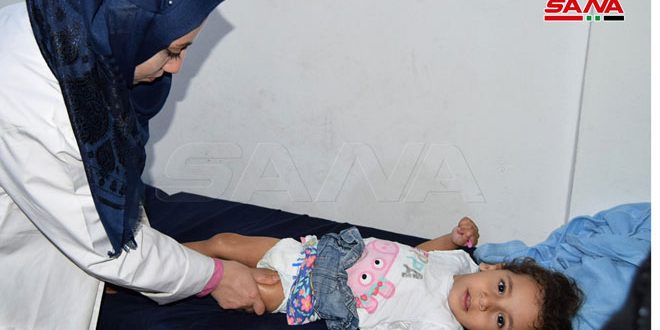 والدة الطفلة أريج أحمد المحمد اوضحت لمراسل سانا أن طفلتها ذات الأعوام الخمسة ولدت ولديها ضمور عضلي وجسم ضعيف وغير قادرة على تحريك اليدين والقدمين وحاولت منذ البداية معالجتها بدمشق ولمدة أربعة أعوام ونتيجة الظروف الحالية ومشقة السفر وتكاليفه أصبحت تراجع مركز السنابل ولمدة عام ومن خلال الجلسات العلاجية المتتابعة أصبحت الطفلة اليوم قادرة على المشي وتحريك أطرافها.