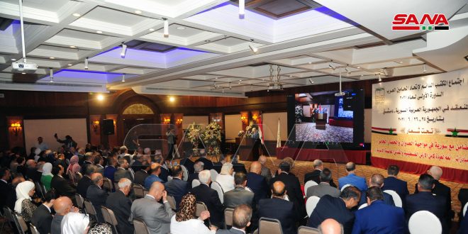 ولفت فارس إلى أن انعقاد الدورة في دمشق يؤكد مواقف الاتحاد وتضامنه مع سورية في وجه العدوان والحصار.
