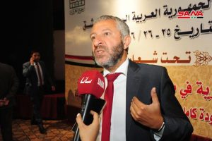 من جانبه بين عضو وفد نقابة المحامين من المغرب عبد الحفيظ بوشنتوف أن وجوده في دمشق اليوم للتأكيد على تضامننا مع الشعب السوري الصامد الذي واجه أقوى وأعتى هجمة في التاريخ المعاصر وجئنا لنعبر عن تضامننا مع الدولة السورية وإدانة ما تتعرض له من حصار اقتصادي جائر.